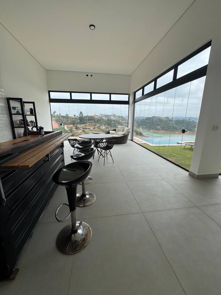 A casa localiza-se em condomínio fechado, com uma vista linda para a represa.